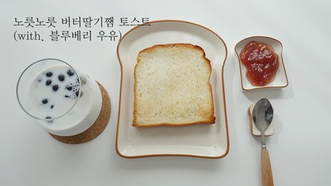 오늘 저는 버터 딸기쨈 토스트와,블루베리 우유를 곁들여 만들어 보았는데요~