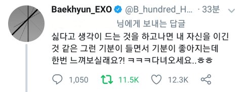 방금전까지 트위터로 백현이 팬들이랑 댓글파티했는데