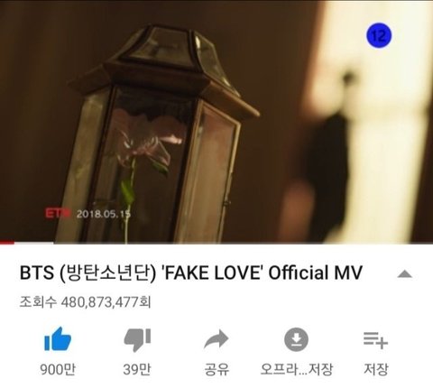 KPOP 아이돌 최초로 좋아요 900만 돌파 전세계 뮤비 중 26번째로 좋아요 900만 달성 전세계 뮤비 중 26번째로 많은 좋아요