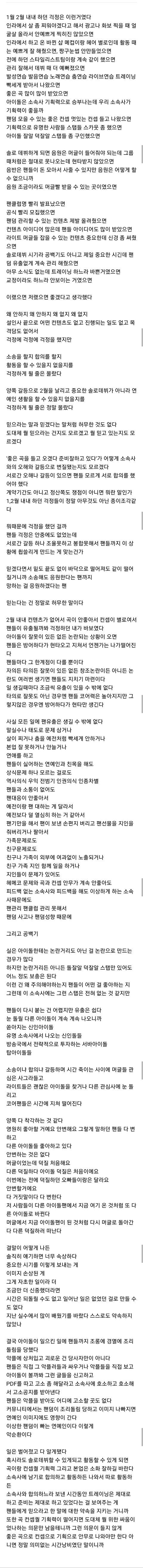 자기가수의 어려움보다 자신의 덕질이 더 중요한 사람이 진짜 팬일까? 공카에 팬코도 많고 정회원중에 알바도 있는데....혹시 본인이 쓰고 여기로 옮긴건 아닌지......알바???