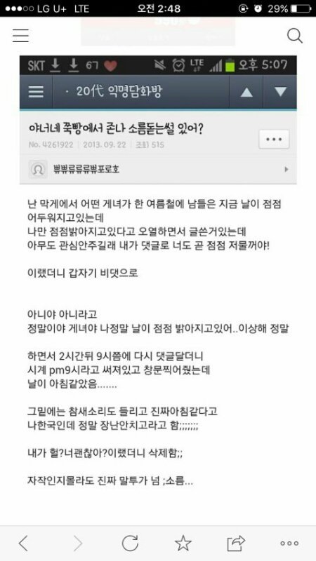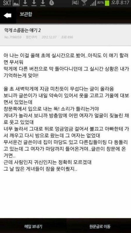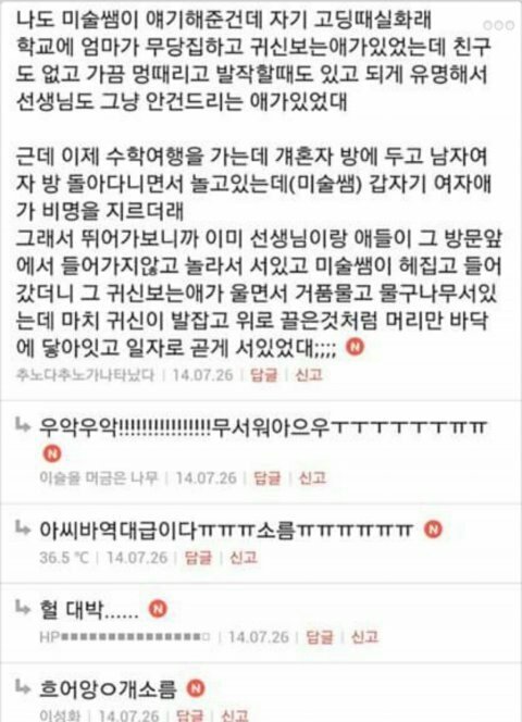 ㅈㄱㄴ 웃긴 썰이랑 설렘 썰이랑 소름돋는 썰 있어! 본문은 전부 무서운 썰이고 댓글에 내가 웃긴거랑 설레는거 올려놓고 있는 중이야!