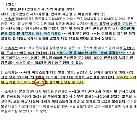 공개된 계약서 증거에의하면 소속사 뿐 아니라 양도받은 제 3자 M_이 또 다른 제3자한테도 양도가 가능하다는거.. 헐