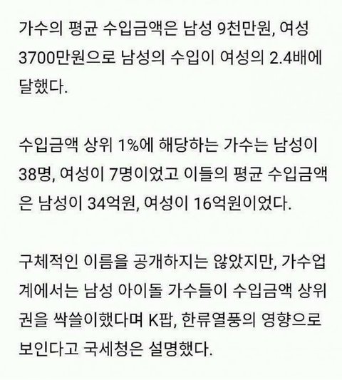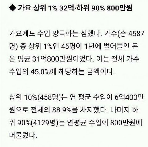 가수 상위 1퍼센트의 수입