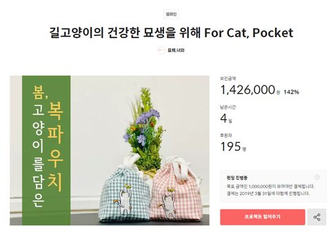 텀블벅에 새로운 디자인이나 아이디어 상품 올라오는거 구경하는 재미가 있어서 자주 둘러보는데 이번에 귀여운 고양이 파우치를 발견했습니다
