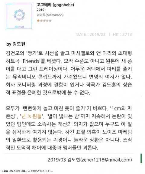 원래 마마무 그룹자체가 미국팝을 컨셉으로 한그룹이라서 미국에 유행하는 장르에 민감하게 반응해서 신곡 내왔는데 그래서 그런지 데스파시토 대히트 치고 라틴느낌나는 곡을 계속 들고나옴 사실 라틴 음악이 대중적으로 좋게들릴려면 편곡을 해야하는데 편곡하는 패턴이 비슷해서 계속 이런문제 터지는거같음 근데 더 문제는 데스파시토 나온지 3년쯤 됐는데 아직도 라틴느낌나는 음악하고 있음