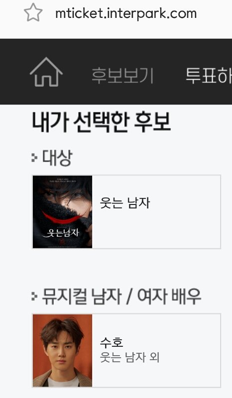 대상-웃는남자 & 뮤지컬 남자배우- 수호 투표ㄱㄱ