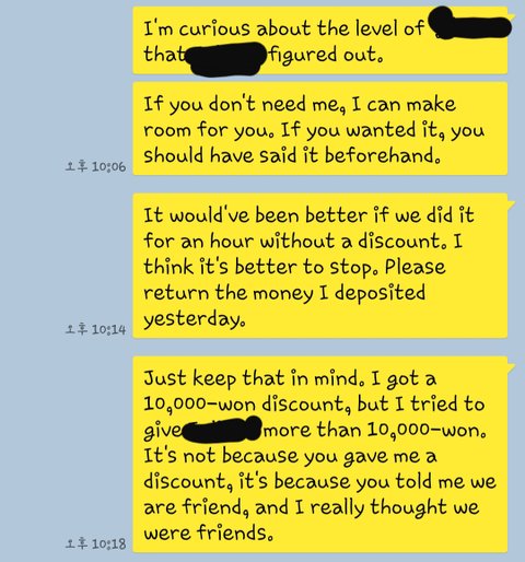 두번째 똑같은 메시지 받는 순간 이미 기분 상했는데 심지어 톡 보냈는데 읽지도 않더라구요.