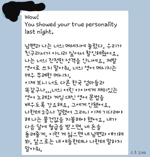그랬더니 그날 저녁 아래처럼 톡이 와서 얘기했어요.