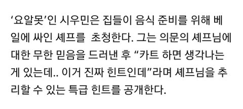 민석이 기사 이제 봤는데 요리사 힌트가 카트ㅋㅋㅋㅋ