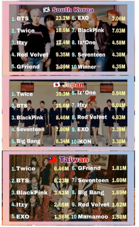 일본, 대만은 트와이스가 1위