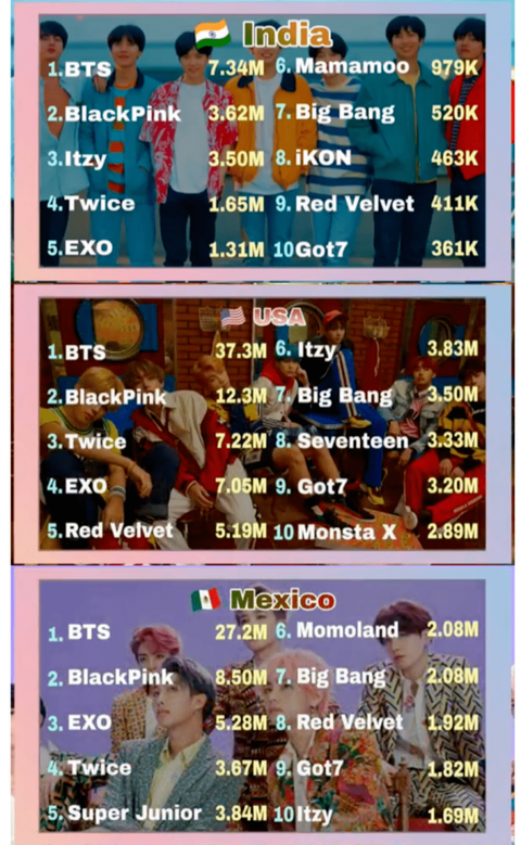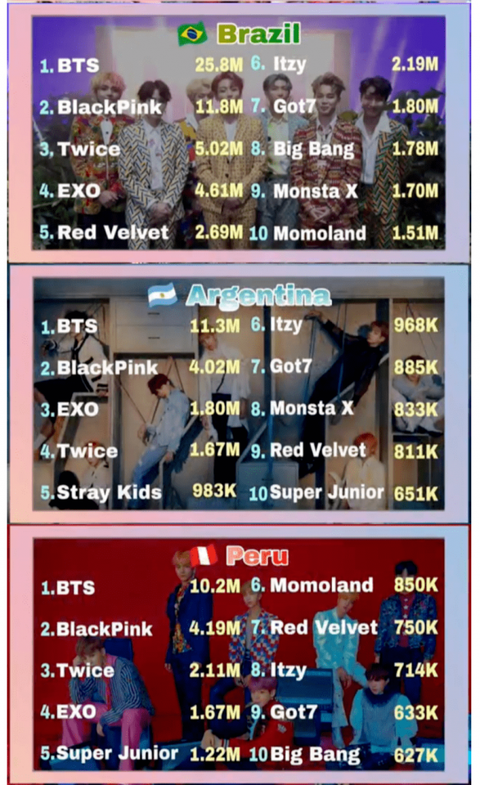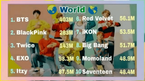 전세계로 보면 방탄 >블핑 > 트와이스 > 엑소 순