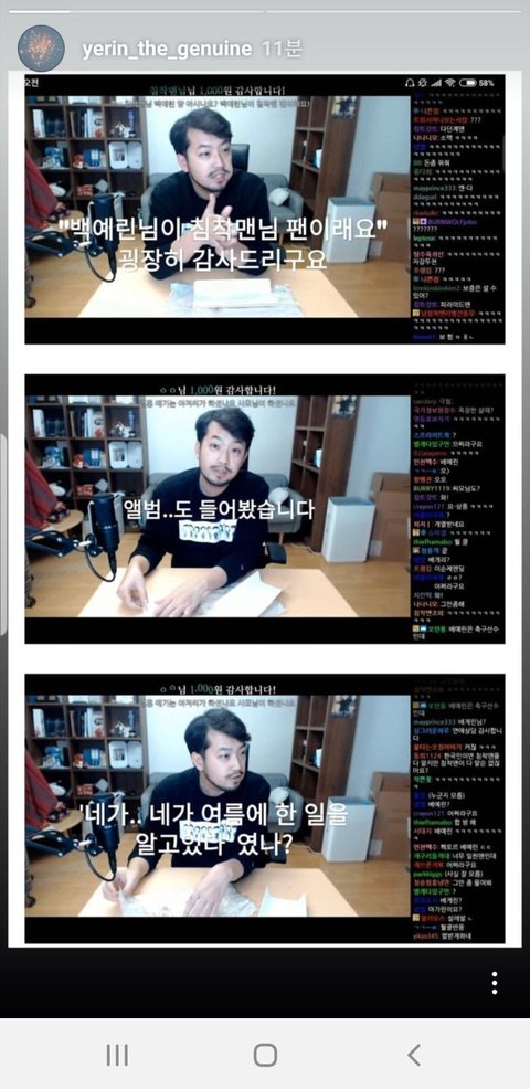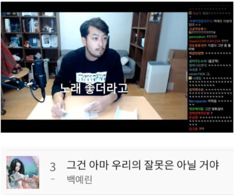 "백예린님이 이말년(침착맨) 팬이예요!!!"라는 댓글이 달림