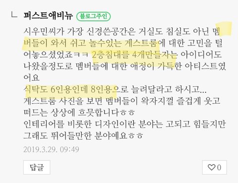인테리어 업체에서 공개한 엑소 시우민네 집