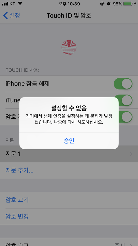 아이폰8쓰고있는데 어플 다운받을때 지문인식하자나 근데 나는 자꾸 비밀번호만 적으라구 나오더라고 그래서 설정에 암호및 터치아이디 가서 앱스토어 비활성화했다가 활성화 했는데 저렇게떠,, 어떡해야하는지 아는사람?ㅠㅠ