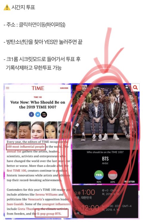 빨간 네모 쳐둔 영향력있는 100인을 눌러도, 케팝그룹 방탄을 눌러도.. 그냥 가수들 소개글만 나오더라규