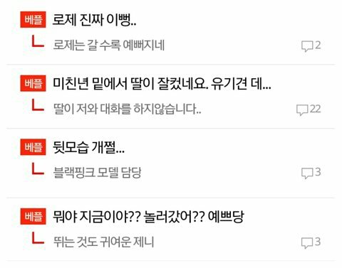 와이지 알바 진짜 있는게 블핑 특히 제니글 이런식으로 짤 한두장 띡 올려놓고 댓글 1,2개뿐인데 베플조작해서 조회수올리고 톡선가게하는거 한두번 본게아님 전부 한명이 쓰는거 티남 팬이면 그래도 눈치는 볼텐데 얘는 하는짓이 눈치도 안보고 할당량만 채우면되는 알바같음 진짜 팬이면ㅋㅋㅋ노답인거고