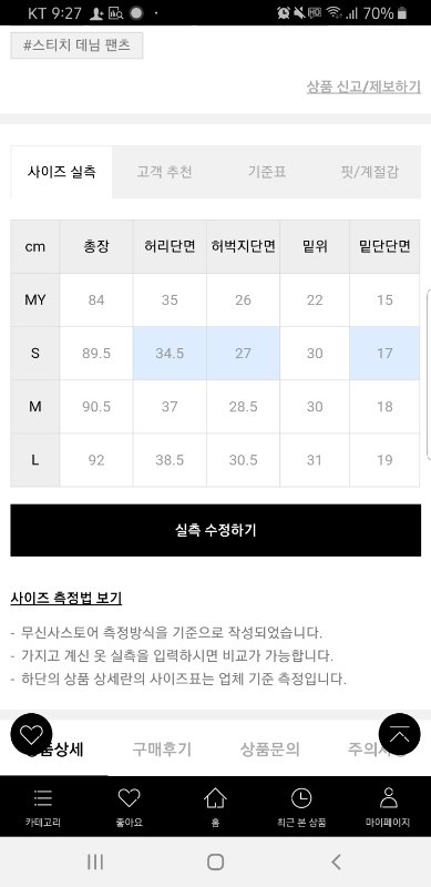 청바지 사이즈 추천 좀 해조ㅜㅜ