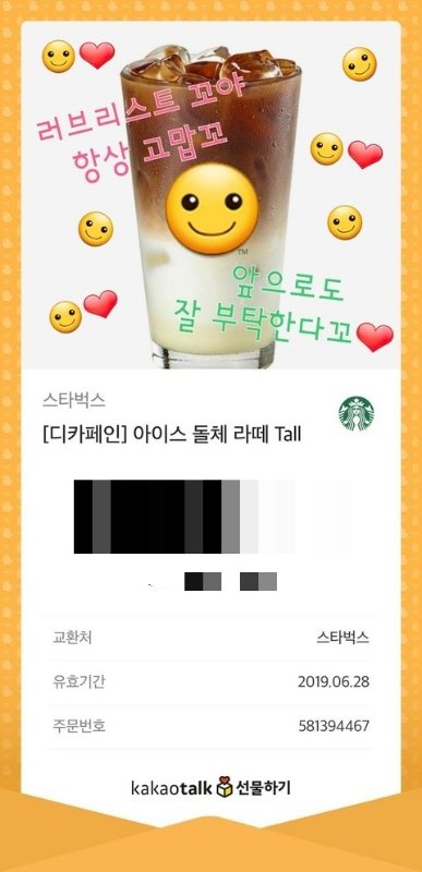 오늘 낮에 천사 브야에게 S벅 디꼬페인