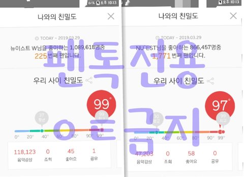 그동안 뉴블만 거의 99도였고 뉴이스트는 온도가 떨어져서 94도에서 95도 쯤에 머물렀는데ㅠ ㅠ 요즘 조금씩 온도가 올라가고 있어서 기쁘당 ㅋㅋ