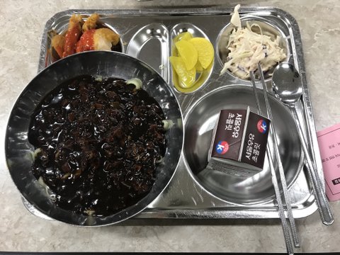 처음으로 석식먹었던 날인데 짜장면 존맛탱