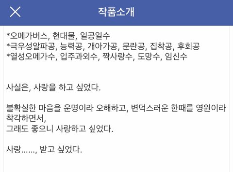 후회+개아가공x짝사랑수의 조합,,rg? 최고로 존맛인 거,,내가 환장하는 조합인데 조아라의 신작으로 나왔더라고ㅋㅋㅋㅋㅋㅠㅠ행복해 게다가 배경이 -오메가 버스-다,,전형적인 알파와 오메가의 만남인데 내용은 즈언혀 전형적이지 않아 존잼임ㅋㅋ