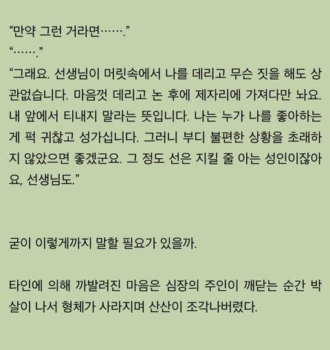 수가 공에 대한 마음을 눈치챔과 동시에 까이는 장면,,ㅠ공은 지레짐작하면서 나 좋아하지말라~개아가짓 하는데 이게 바로 후회공에 맛 아니겄음?ㅎㅎ 후회공 마일리지 적립 될 때 마다 가장 행복한 것 = 읽고 있는 독자들,,(도망수! 짝 도망수! 짝^^)
