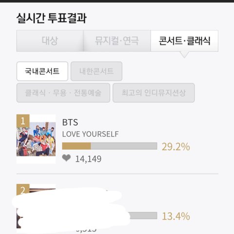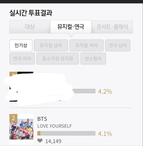 뮤지컬연극 인기상이랑 콘서트클래식 저거 뭐야...!