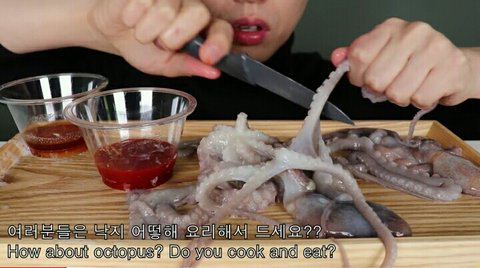 잔인하기도 하고 위험하기도 한 산낙지 먹방이