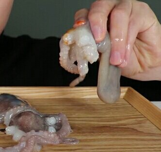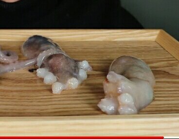 다리가 모두 잘린채 몸통만 남아있는 산낙지