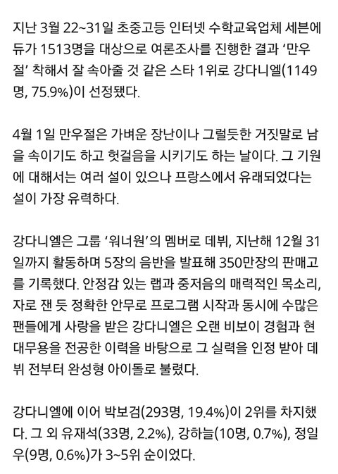 '만우절' 착해서 잘 속아줄거 같은 스타 1위