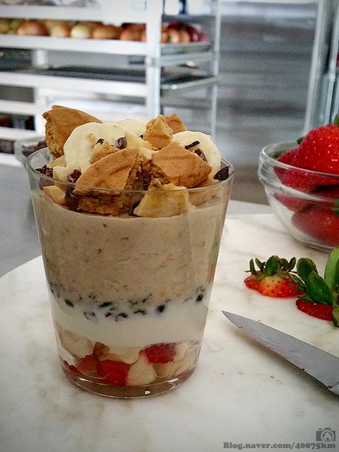 아침식사 대용으로 먹을만 한 오트밀입니다. 바나나와 딸기, 요거트, 살짝 달달한 오트밀이 들어 있지요.