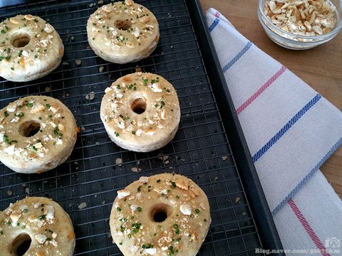 보통 비스킷 만드는 것과 크게 다르지는 않은데, 반죽에 체다 치즈와 올드 베이 시즈닝, 그리고 리츠 크래커가 들어간다는 게 차이점입니다.