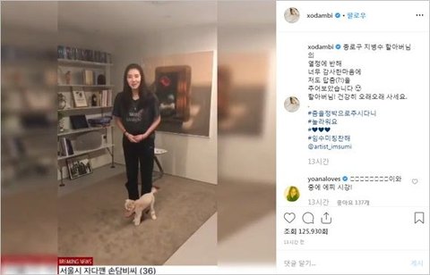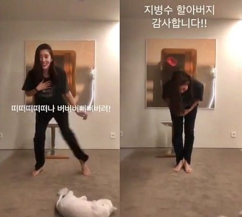 손담비가 SNS에 할아버지의 노래에 맞춰
