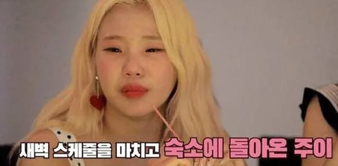 어느 날은 새벽 스케줄을 마치고 주이가 숙소로 돌아와서,