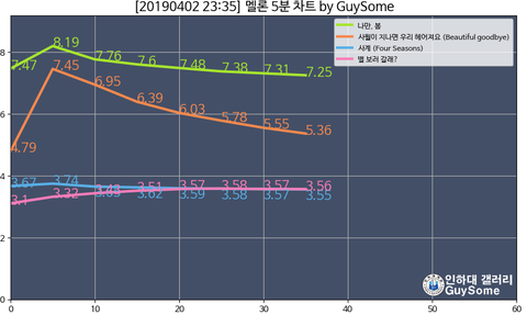 우리 그래프 3위랑 차이 난다고 여유 부리지 좀 말자 다른곡이 치고 올라옴 백퍼임 버티자 진짜
