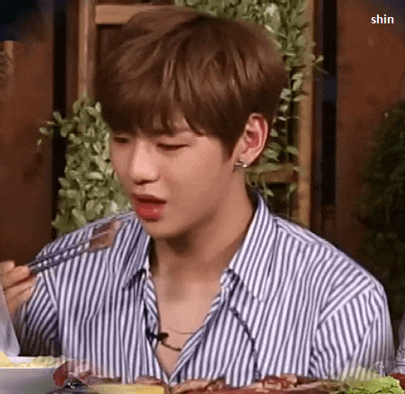한밤나왔을때 고기먹는 다니엘 귀여워❤️