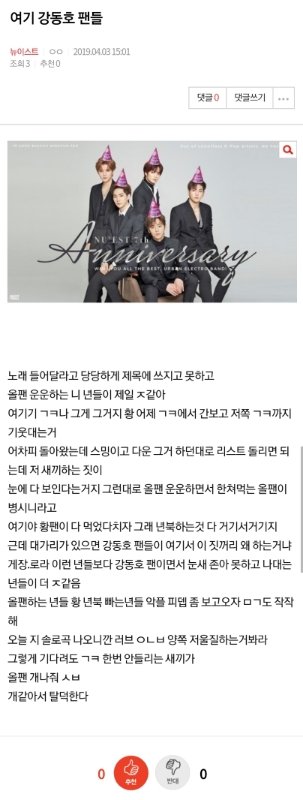 아래 '여기 강동호 팬들' ㅁㄱ 댓금지(캡처유)