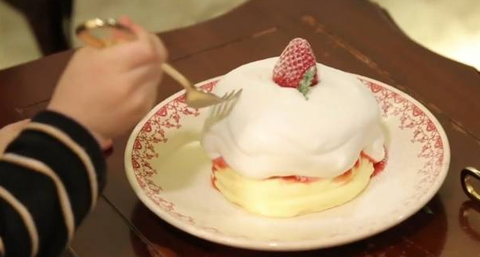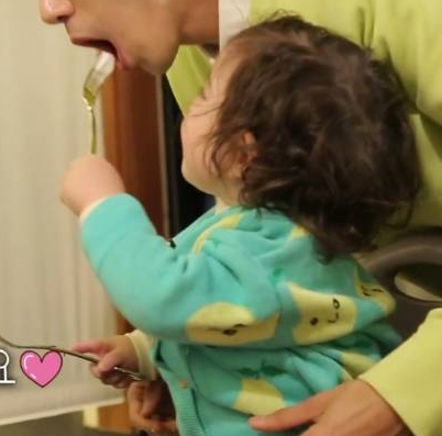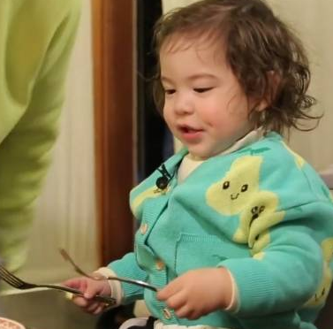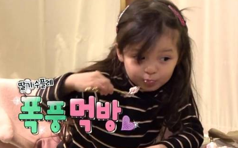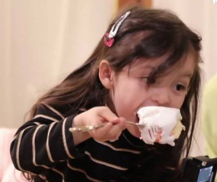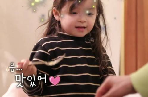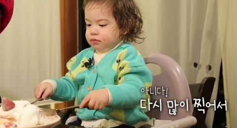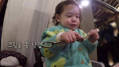 딸기 수플레를 한 입 먹고 맛있다고 하는 나은이