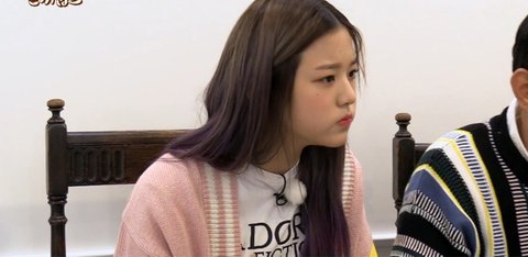 밥먹을때 통통 볼살도 너어어무 귀엽구보라색?머리도 가디건에 흰티까지 왜 다 귀엽게 보이는지ㅎㅎ
