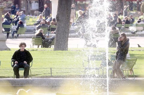 한 공원 벤치의자에서 남동생으로 보이는 남자애가 누나 사진을 찍고 있음 ㅎㅎ