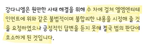 -이런 계약 위반 사항을 알고 강다니엘은 2월1일 내용증명을 보내서 계약 시정 요구.