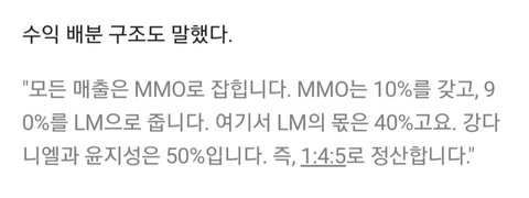 이후 길종화가 LM차려서 나온거. LM은 자본금 100만원인 영세회사고 계약금은 5천줌. 애초에 돈보고 길종화랑 계약한게 아님. (길종화는 강다니엘이 MMO전에 있던 B2M 회사 대표임)