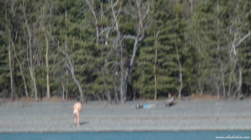 제가 망원렌즈로 잡은 장면인데, 세상에나 얼음물 같은 호수에서