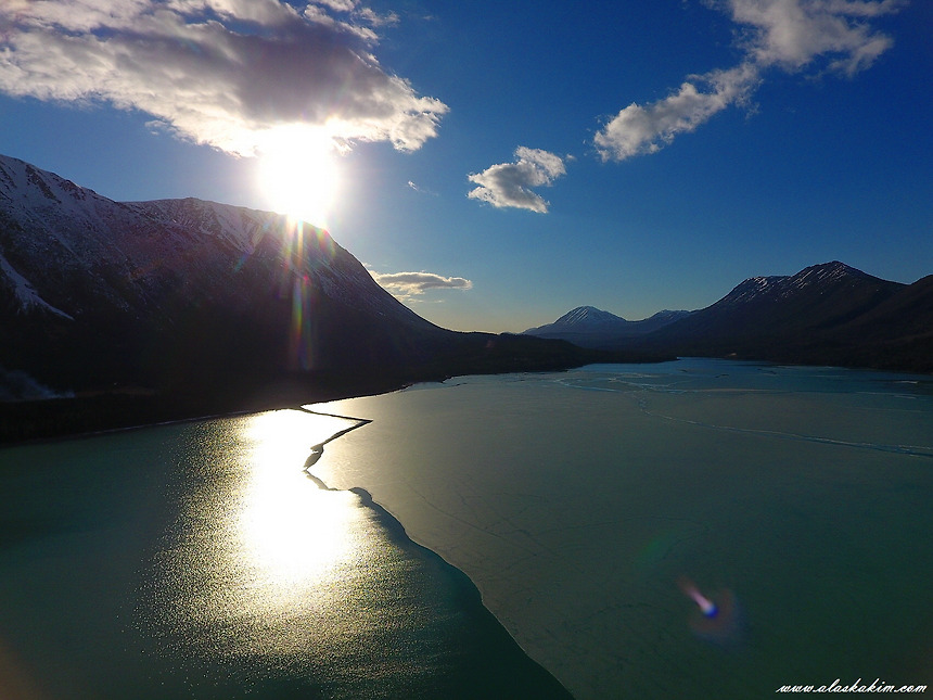 하늘에서 내려다본 키나이 호수의 모습입니다.