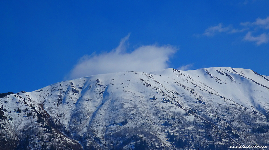제가 쳐다보니, 낯가림을 하는지 설산 뒤로 숨는 구름입니다.