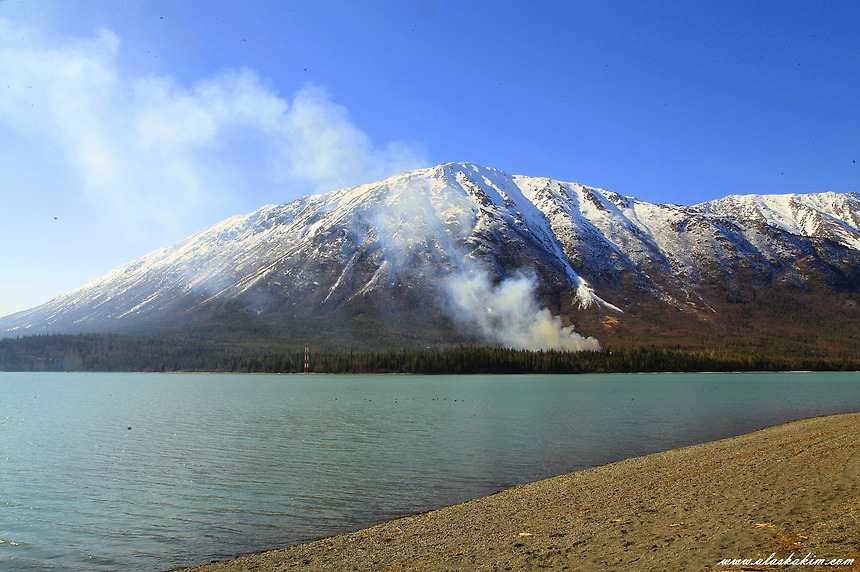 호수에 도착하니, 맞은편에서 연기가 자욱하게 나더군요.