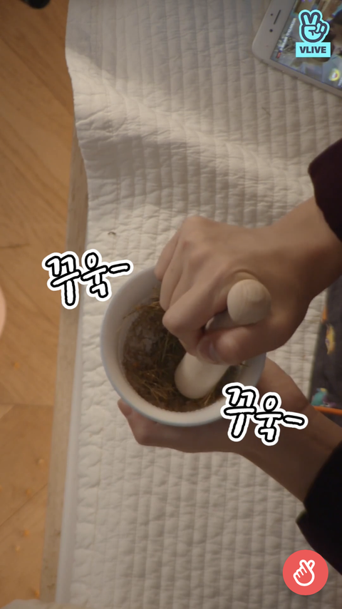 중간에 머리채 다뜯긴 드라이플라워 흘려서 당황하지만 침착하게 정리하고 절구질을 시작함ㅋㅋㅋㅋ 이때부터 진짜 진지해서 말도 못붙이겠더라 ㅋㅋㅋ