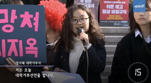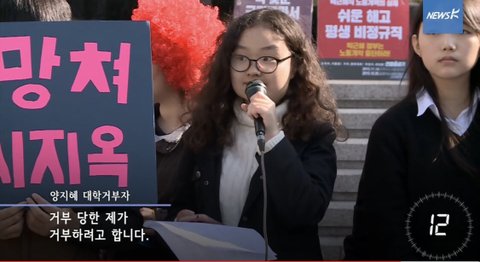 +) 아니 애초에 대학거부자 라는 말이 너무 어이없음 대학이 우릴 뽑는거지 우리가 대학을 골라가는게 아니잖니..ㅋㅋㅋㅋ 쟤네 수능보는 날에서 피켓들고 시위하더라 서울대 붙은 사람이 자기는 대학 거부하겠다고 시위나 하면 몰라 못간사람이 그러면 누가 그말을 들어줄까ㅋㅋ 그리고 저 남자 결국 한국외대감 지도 깨달은게 있는거지 몇몇은 공장 생산직에서 일하고 있음 정말 이런 교육을 해결하고 싶다면 저렇게 때쓰는 것이 아닌 대학을 가서 높은 자리에 올라 교육을 개혁하는게 맞는다고 봄 저건 뭐 아무런 의미도 없이 본인인생만 망치는 길인거 같음 개인적인 생각임