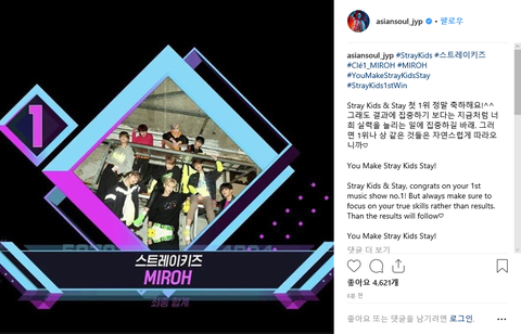 "스트레이키즈와 스테이 첫 1위 정말 축하해요!^^"