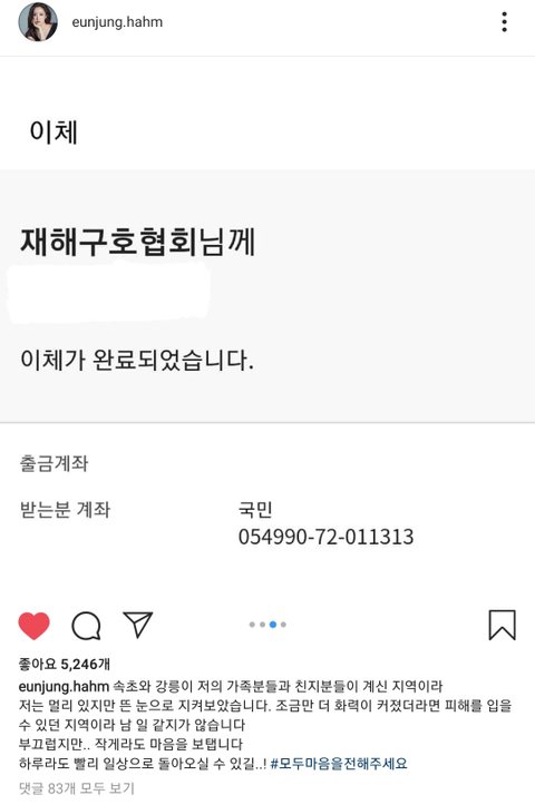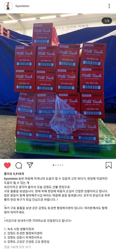 티아라 효민, 은정이 강원도 산불 현장에 구호물품 보냄